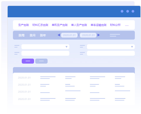 生產(chǎn)臺(tái)帳:統(tǒng)計(jì)生產(chǎn)半成品詳細(xì)信息,為結(jié)算、績(jī)效考核提供依據(jù);