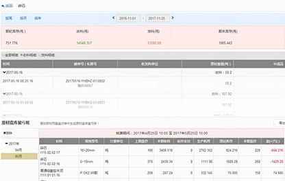 材料動(dòng)態(tài)收發(fā)存監(jiān)控,真實(shí)反映原材庫(kù)存情況,指導(dǎo)采購(gòu),核查材料,發(fā)現(xiàn)問題。促進(jìn)生產(chǎn),確保工程進(jìn)度。
