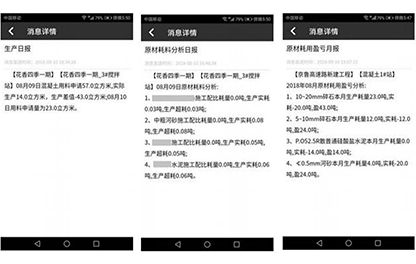 攪拌站生產(chǎn)情況實(shí)時(shí)分析,每天、每月定時(shí)推送,及時(shí)了解拌合站生產(chǎn)及原材耗用情況。