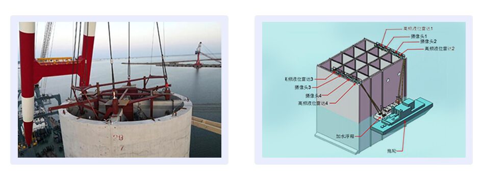 沉箱信息化無人安裝系統(tǒng)可以實現(xiàn)完成高大沉箱安裝無人加水控制、監(jiān)測,實現(xiàn)完成高大圓沉箱安裝自動掛鉤、摘鉤吊具設(shè)計。